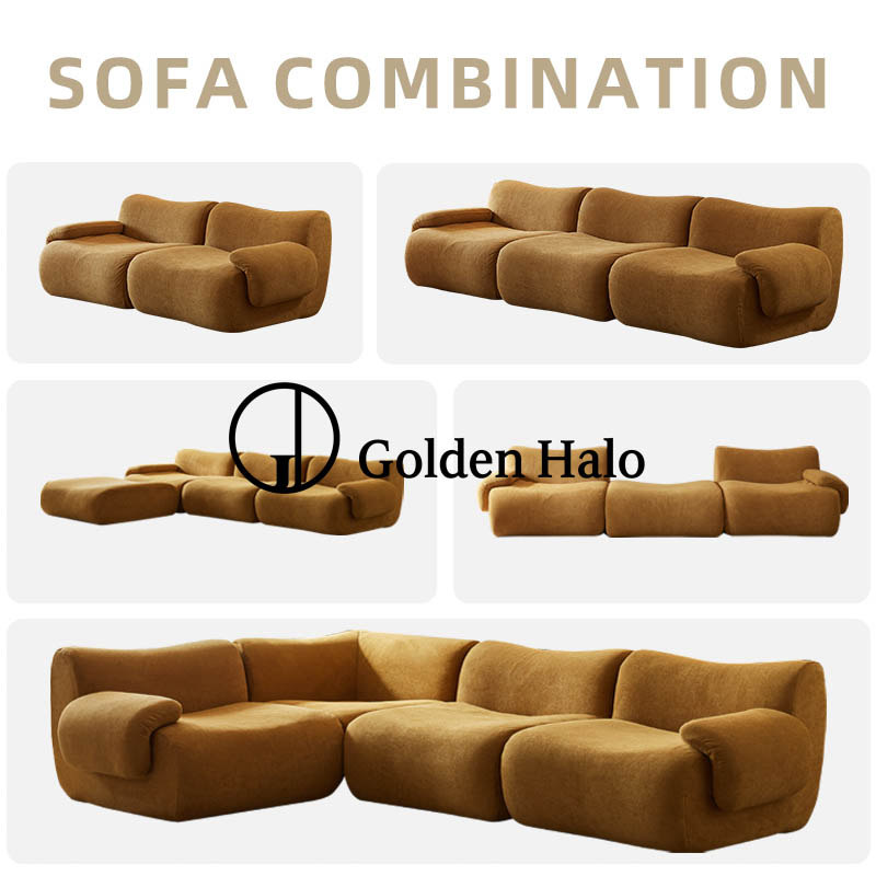 Interchangeable Sections: Multiple modules can be rearranged into different shapes (L-shape, U-shape, or standalone seats).