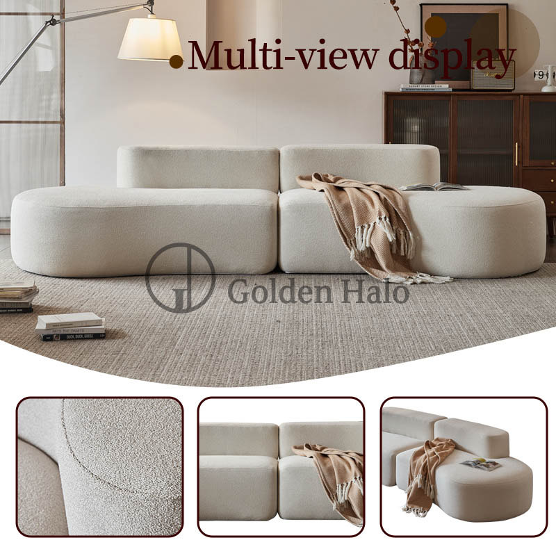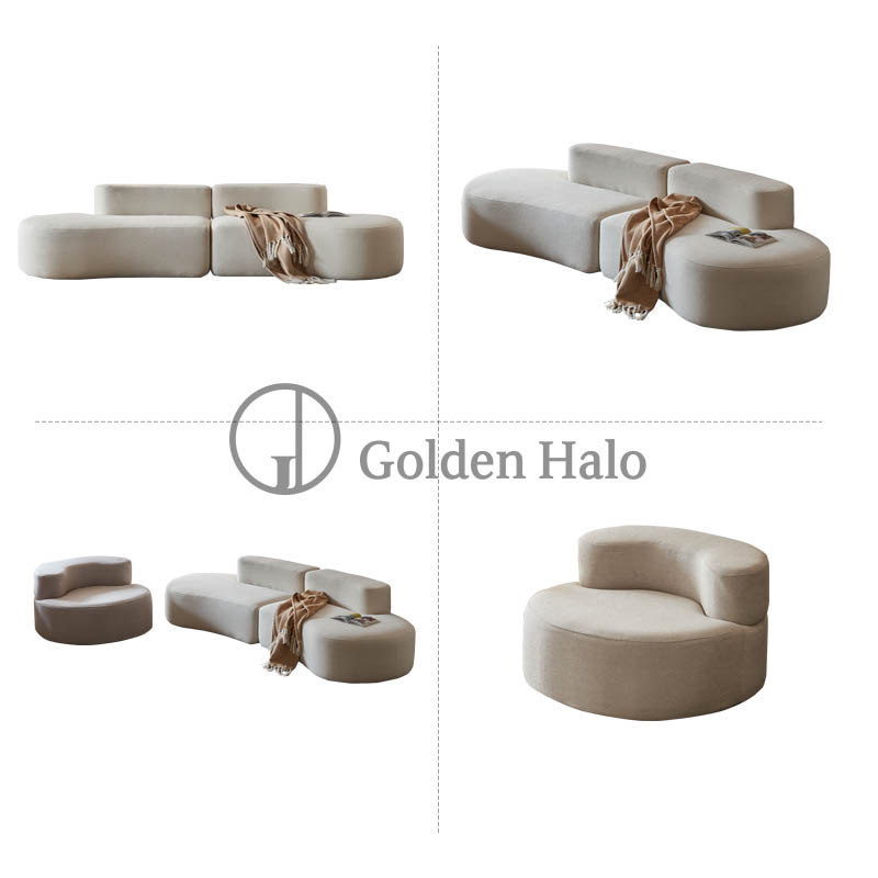 Interchangeable Sections: Multiple modules can be rearranged into different shapes (L-shape, U-shape, or standalone seats).